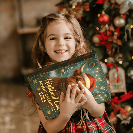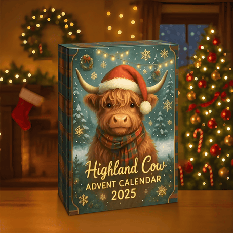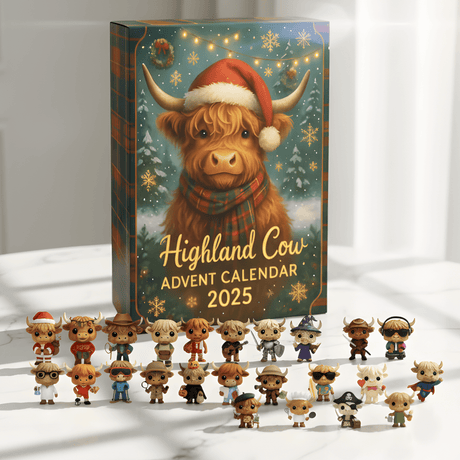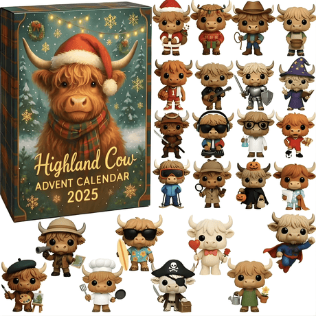 HighlandJoy – 2D Julkalender med 24 Highland Cow-figurer för Nedräkning till Jul